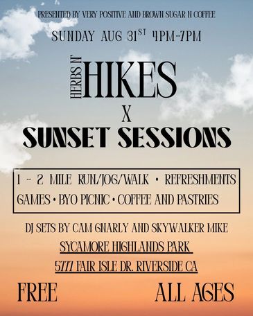 AUG. 31• DJ SET ---HERBS N HIKES w/ SUNSET SESSIONS -- RIVERSIDE, CA